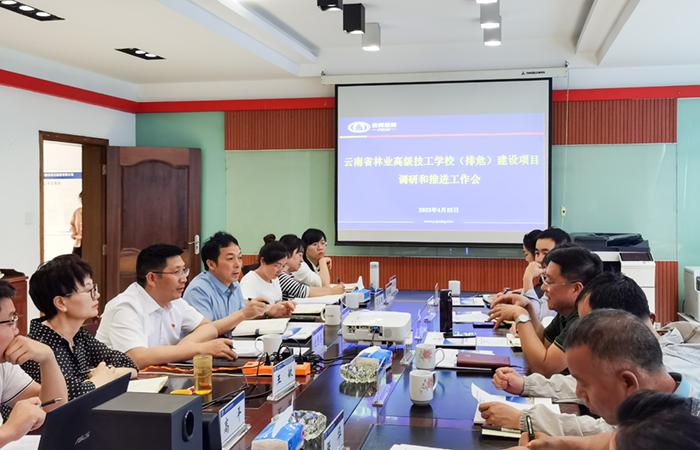 4月25日下午,云南省林業(yè)高級技工學(xué)校黨委副書記、校長張沖平,黨委書記溫紹龍一行到公司五〇五直管部調(diào)研,公司黨委副書記、副董事長、總經(jīng)理付雋蒼熱情接待來訪客人,雙方就云南省林業(yè)高級技工學(xué)校(排危)項目的推進(jìn)深入交流座談。