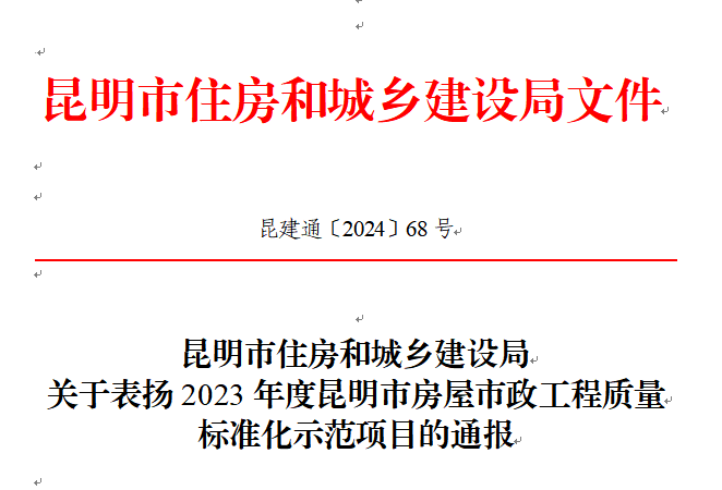 技術(shù)支持: 方森科技近日,昆明市住房和城鄉(xiāng)建設(shè)局公布了《關(guān)于表揚(yáng)2023年度昆明市房屋市政工程質(zhì)量標(biāo)準(zhǔn)化示范項(xiàng)目的通報(bào)》,公司多個(gè)項(xiàng)目獲獎(jiǎng)。