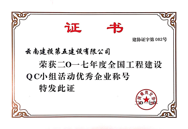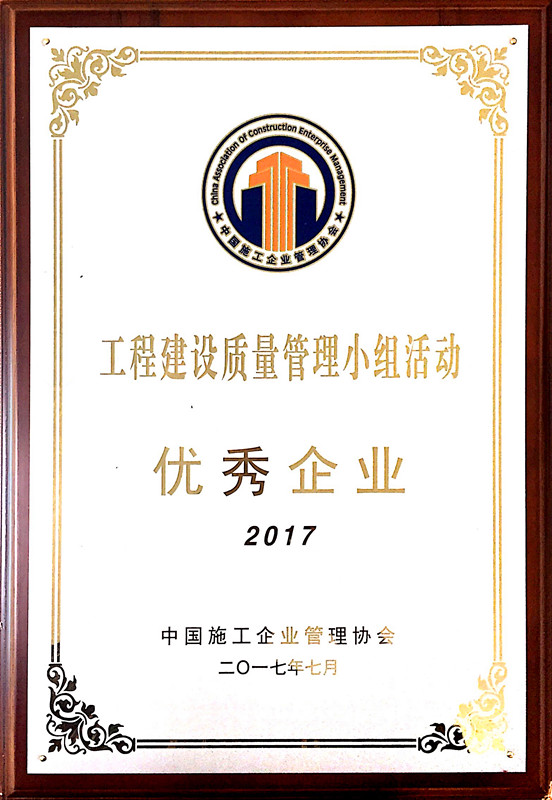 公司榮獲2017年度全國工程建設QC小組活動優(yōu)秀企業(yè)稱號