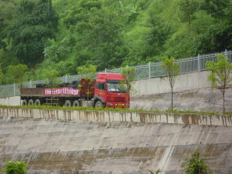 今天,共有10輛運輸車陸續(xù)發(fā)出,中午,得知有兩輛運輸車拋錨,正在緊急搶修。公司紀委書記謝海健、材料供應部經(jīng)理殷勇南趕到搶險現(xiàn)場。到下午6點,到場車輛6輛,剩余4輛在距離現(xiàn)場20-100公里范圍內(nèi),現(xiàn)場下起大雨,進場道路本來就坡陡彎急,雨后更加泥濘濕滑,加之天色已晚,為了安全起見,在請示集團現(xiàn)場領導后,我們向最后4輛運輸車下達了在距現(xiàn)場20公里位置休息,天亮后再進現(xiàn)場的指令。