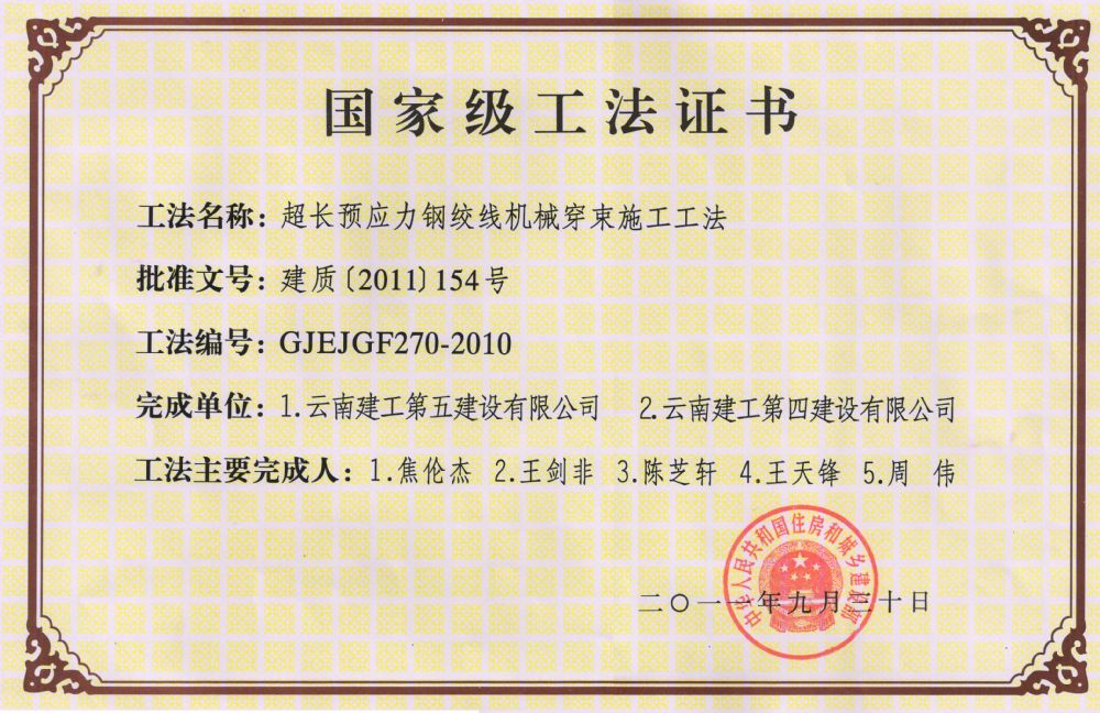 (國家工法)超長預(yù)應(yīng)力鋼絞線機(jī)械穿束施工工法