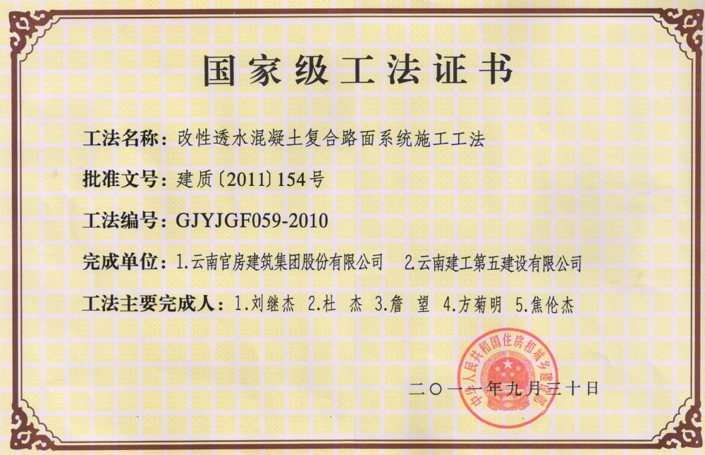 (國家工法)改性透水混凝土復(fù)合路面系統(tǒng)施工工法