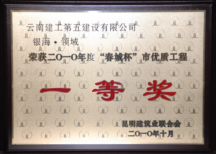 公司承建的銀?!ゎI(lǐng)域榮獲2010年度“春城杯”市優(yōu)質(zhì)工程一等獎