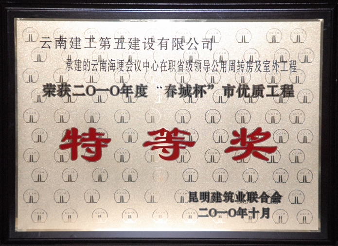 公司承建的云南海埂會議中心在職省級領(lǐng)導(dǎo)公用周轉(zhuǎn)房及室外工程榮獲2010年度“春城杯”市優(yōu)質(zhì)工程特等獎