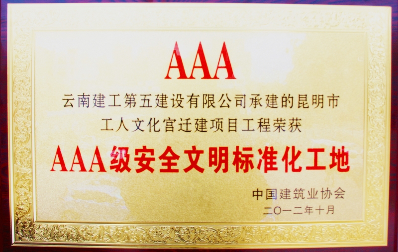 公司承建的昆明市工人文化宮遷建項目工程榮獲AAA級安全文明標(biāo)準(zhǔn)化工地