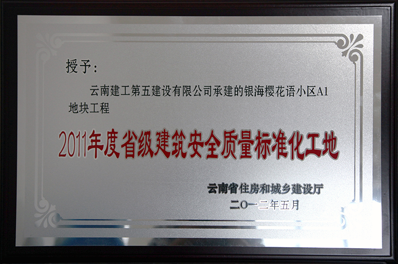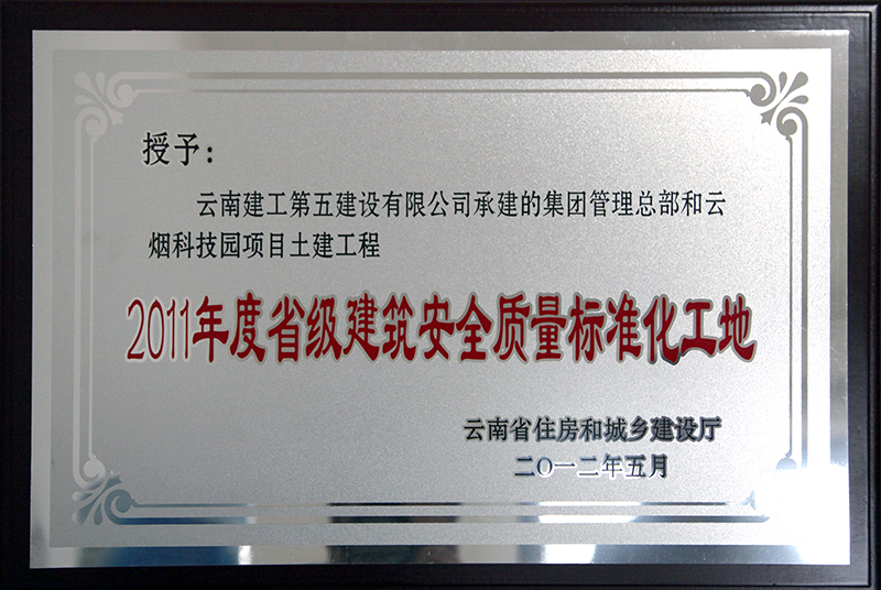 五〇一直管部承建施工的云煙科技園項目土建工程獲“2011年度省級建筑安全質(zhì)量標(biāo)準(zhǔn)化工地”稱號
