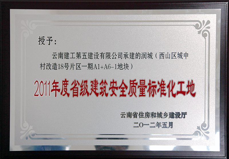第五直管部承建施工的潤城(西山區(qū)城中村改造18號片區(qū)一期A1+A6-1地塊)工程獲“2011年度省級建筑安全質(zhì)量標(biāo)準(zhǔn)化工地”稱號