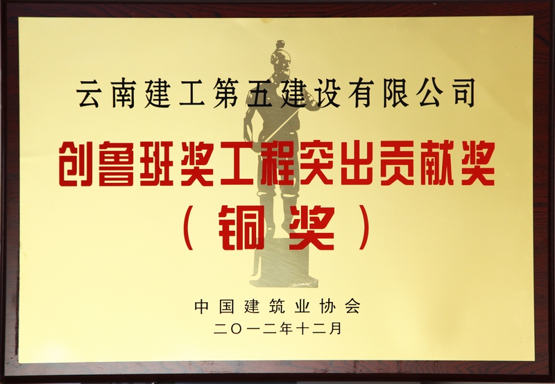 2012年12月公司榮獲中國建筑業(yè)協(xié)會頒發(fā)的創(chuàng)魯班獎工程突出貢獻(xiàn)獎(銅獎)。