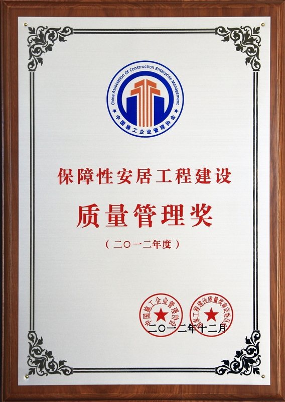 2012年12月,公司榮獲2012年度中國施工企業(yè)管理協(xié)會保障性安居工程建設(shè)質(zhì)量管理獎。