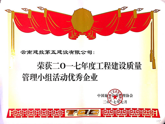 公司榮獲2017年度全國工程建設(shè)QC小組活動優(yōu)秀企業(yè)稱號